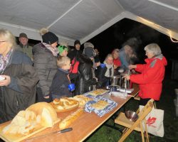 Faklerne blev tændt ved Brugsen og snart derefter gik turen ned af Bisserup Havnevej med hyggelig snak undervejs. Poselanterne lyste vej hen til teltet, hor suppemagerne stod parat med 4 slags dejlige supper og lækkert hjemmebagt brød. GLÆDELIG jUL OG GODT NYTÅR TIL ALLE
