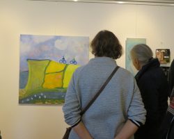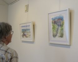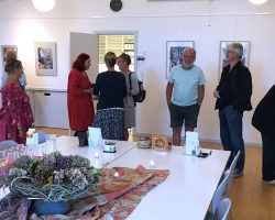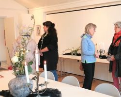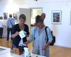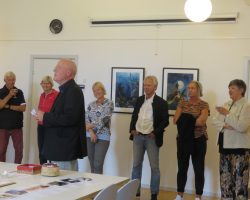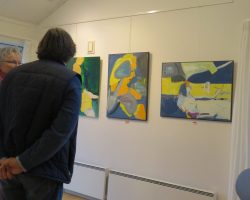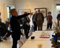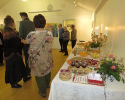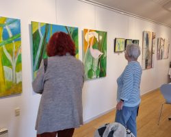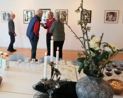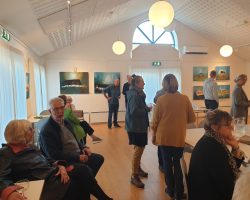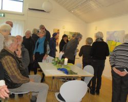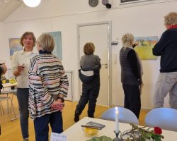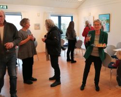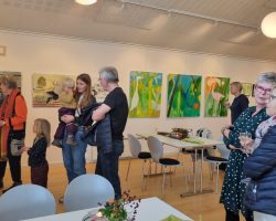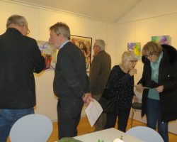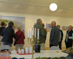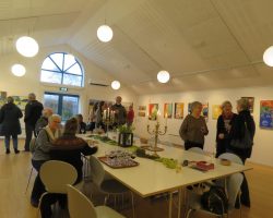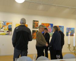 Vellykket og velbesøgt fernisering med Estrid Eriksen. Hvis nogen skulle ønske at bese og købe nogle af hendes dejlige billeder, er man velkommen til at kontakte Tove Borello (24871089) eller Birgitte Hiul (21646196). Foto: Birgitte