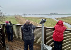 Ved ankomsten ændrede stemningen sig hurtigt fra rolig vandring til travl aktivitet. Søen bød på et imponerende rigt fugleliv – både på vandet, på land og i luften. Kikkerterne kom på overarbejde, og vi nød hvert minut.