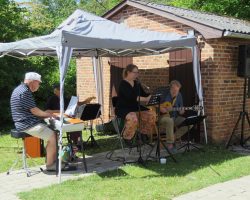 Omkring 70 mennesker fra nær og lidt fjernere nød den dejligste musik. Louise, Finn, Frank og Peter havde sammensat et fint program, som vakte stor begejstring. 1000 tak til dem, alle fremmødte og naturligvis cafeværter og andre bærere som gør arrangementet til en god oplevelse.