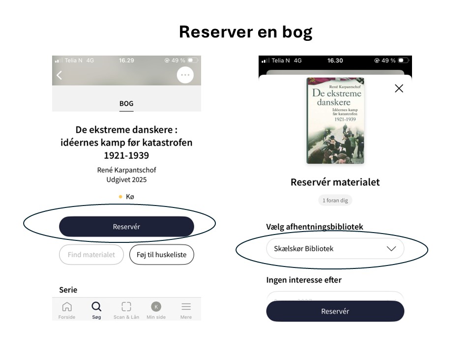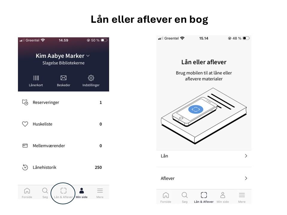 Lån of aflevering fungerer via appen ”Biblioteket” på din mobiltelefon (bøger vil også om kort tid