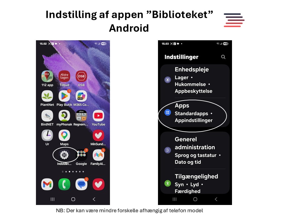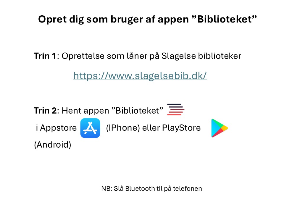 En kort vejledning i opsætning af telefon og appen ”Biblioteket” findes her på Bisserups